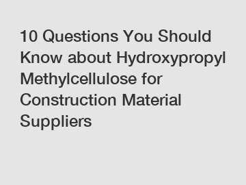 10 Questions You Should Know about Hydroxypropyl Methylcellulose for Construction Material Suppliers