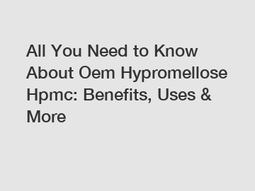 All You Need to Know About Oem Hypromellose Hpmc: Benefits, Uses & More